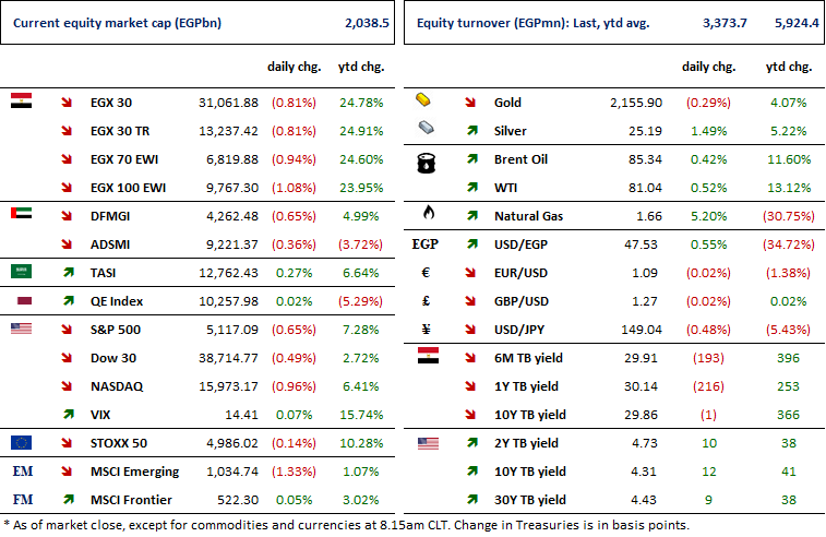 Madinet Masr for Housing and Development [MASR] posted its 2023 consolidated results with a 184% y/y growth in net profits to EGP2.1bn. The strong net profit growth was mainly driven by the higher revenues of EGP7.6bn (+48% y/y) and a strong gross profit margin of 66% (+27.3pp y/y). Regarding Q4 2023, MASR posted a 278% y/y growth in net profits to EGP764mn due to the higher revenues of EGP3.2bn (+48% y/y) and the strong gross profit margin of 68% (+32pp y/y). (Company disclosure)
